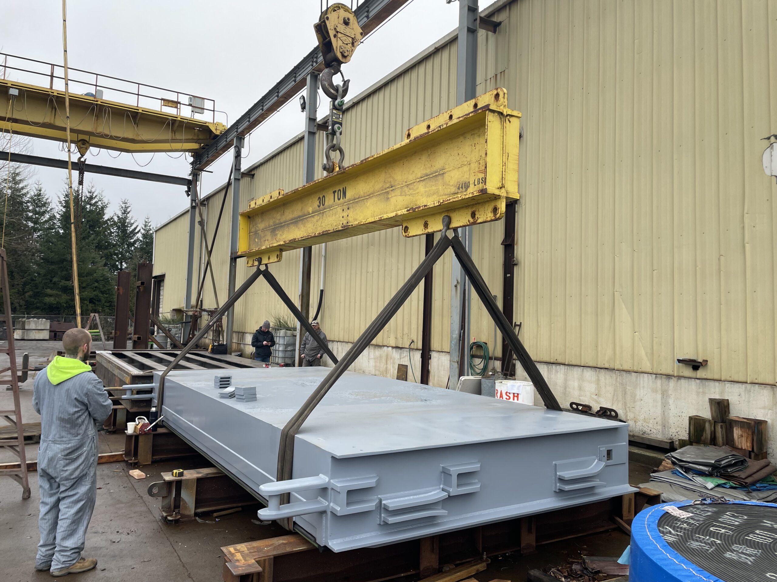 Cougar Dam spillway tainter gate rehab - Painted and ready to ship