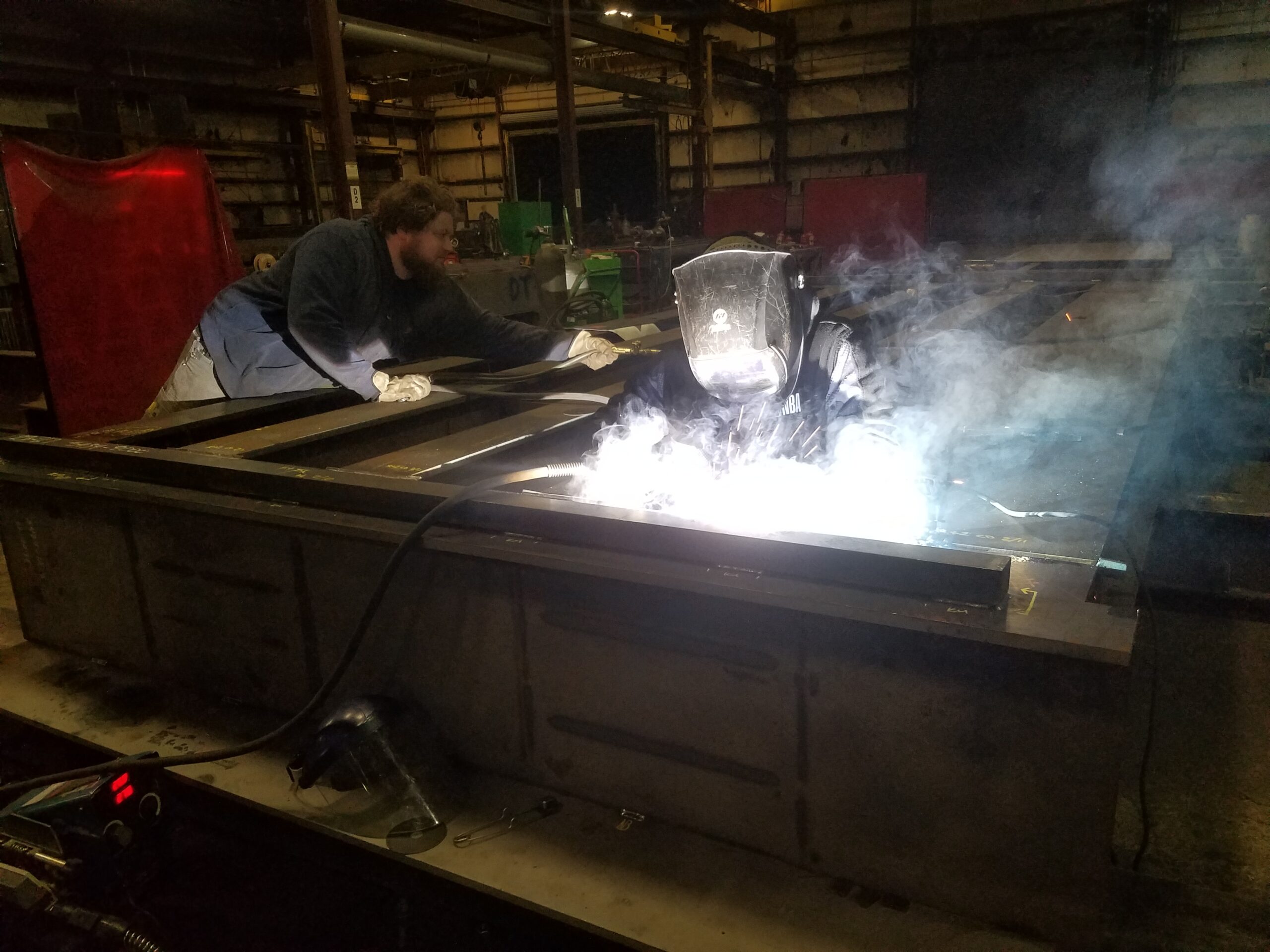Cougar Dam spillway tainter gate rehab - Yoke base welding in progress